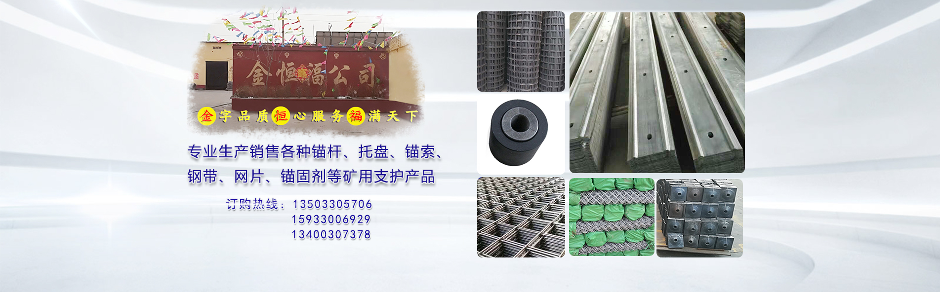 永年區金恒福礦用支護緊固件有限公司位于全國標準件集散地---河北永年.本公司始建于2000年,是永年縣建廠較早的一家專業生產礦用產品的大型企業,是一家實力 雄厚的集生產、經銷為一體的企業.本廠產品種類齊全,質量上乘,技術要求嚴格、服務周到,在同行業中擁有高的聲譽,深受新老客戶的好評。主要生產:16-22、左旋、右旋、圓鋼錨桿以及各種奇難異型錨桿系列產品,球型墊,錨固劑及托盤系列產品,可訂做單頭絲,雙頭絲,地腳絲,對外賣 料。 隨著高產高效礦井的大量建設,錨桿支護已成為礦井巷道的主要支護方式,代表了煤礦采煤巷道的主要發展方向,隨著綜采機械化程度的不斷提高,對支護 材料的要求也不斷提高 我公司生產的產品嚴把質量關,使產品遠銷山西、陜西、河南、內蒙、山東等省市地區及全國各大,中,小城市,出口亞洲,歐洲等多個國 家,受到廣大用戶的一致好評。我廠產品優良,信譽至誠,市場占有率較高。并以更高,更快的速度,發展壯大。 在改革開放的經濟大潮中,我廠正趨于起步發展階段,因而我們真誠的與各銷售商建立良好的合作關系,建立一條良好的生產、銷售渠道,共同開拓市場,共贏雙 利。在滾滾的經濟浪潮中,誠信、務實、創新守紀的經營理念是我們制勝的法寶,這是任何的競爭對手都無法模擬的核心競爭力. 我們發展到今天當然離不開各位老朋友的鼎立支持,因為我們曾經同舟共濟;同時我們也懷著一顆真誠的心, 盼望著結識更多新的合作伙伴,為進一步擴大市場, 本廠及直銷處熱烈歡迎更多的商客朋友來電來函、洽談合作、共創美好明天!我們的口號是“于客戶所需,于客戶所急,以更大的優惠價格使新老客戶稱心如意!” “追求卓越”是我們的主題,我們將勵精圖治,再創高效,優良的產品質量,為煤礦企業提供多方位的服務。
